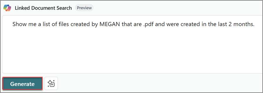 Here is an example where I have combined a search for the Created by User, the file type and the created by. Once the search criteria has been entered, simply select Generate.